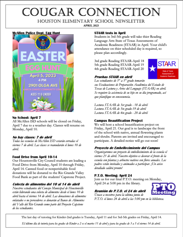 Read the Cougar Connection: Houston Elementary School Newsletter for April 2023!