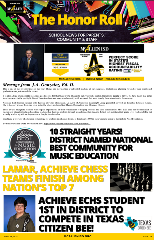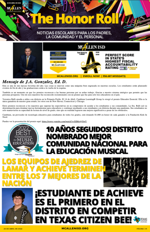 McAllen ISD - The Honor Roll: April 26