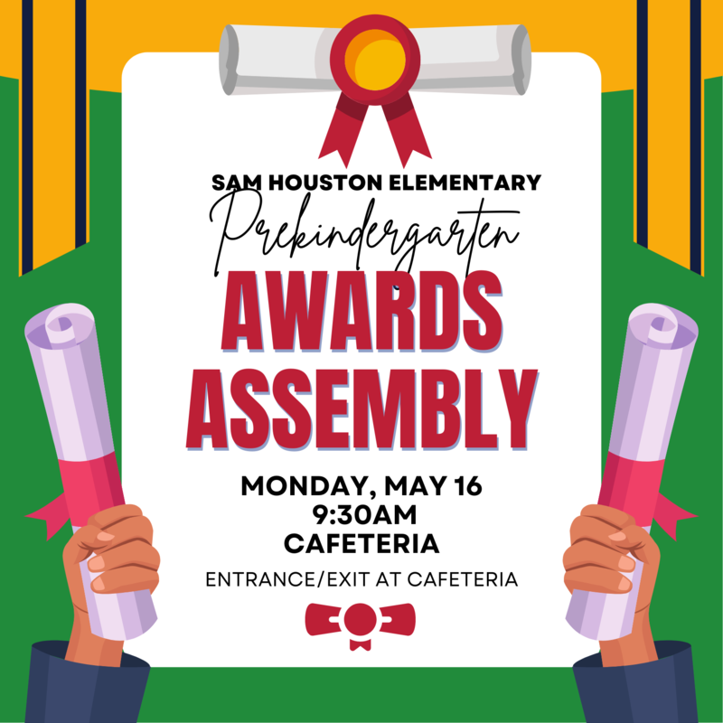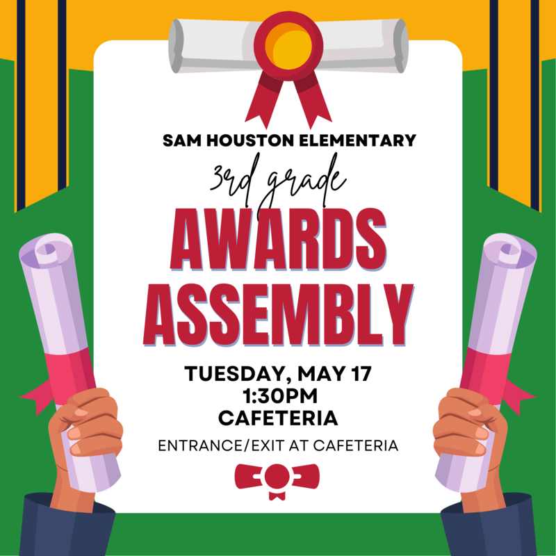 You are invited to the Sam Houston Elementary Awards Assemblies!